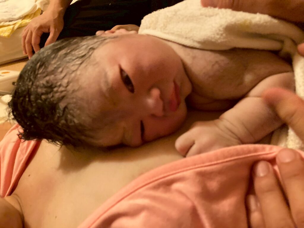 そして、上のお子さんに似たかわいくて大きな赤ちゃんが生まれました!!ママ、本当によくがんばりました!!パパも寝ずにいっしょに乗り越えました。