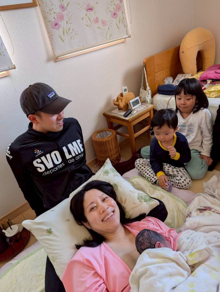 陣痛中も〝多分動いている方が良いですね〟とスクワットをしたり、階段を登ったり下がったり、〝降りてきてる気がする〟と。本当にその数分後に赤ちゃんは生まれてきてくれました。遊んでいた子どもたちやおとうさん、おばあちゃんも急いでおかあさんのそばに。みんなで赤ちゃんを迎えることができました。
